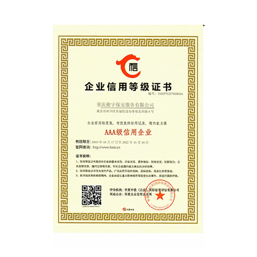 3A級(jí)信用企業(yè)證書