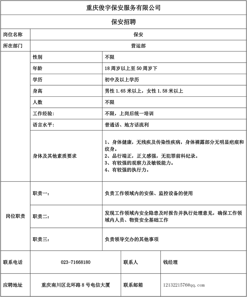 歡迎來到 重慶俊宇保安服務(wù)有限公司 !